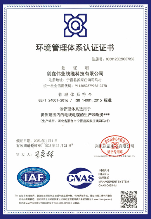 创鑫伟业线缆科技有限公司是一家集电线电缆研发、生产、销售、服务于一体的现代化企业。公司始建于2007年,注册资金3.19亿元,占地面积66000平方米,在编人员300余名,年产值9亿元左右,由高级管理人员、专业技术人员、高素质熟练工人组成了独具特色专业化的管理、生产团队。