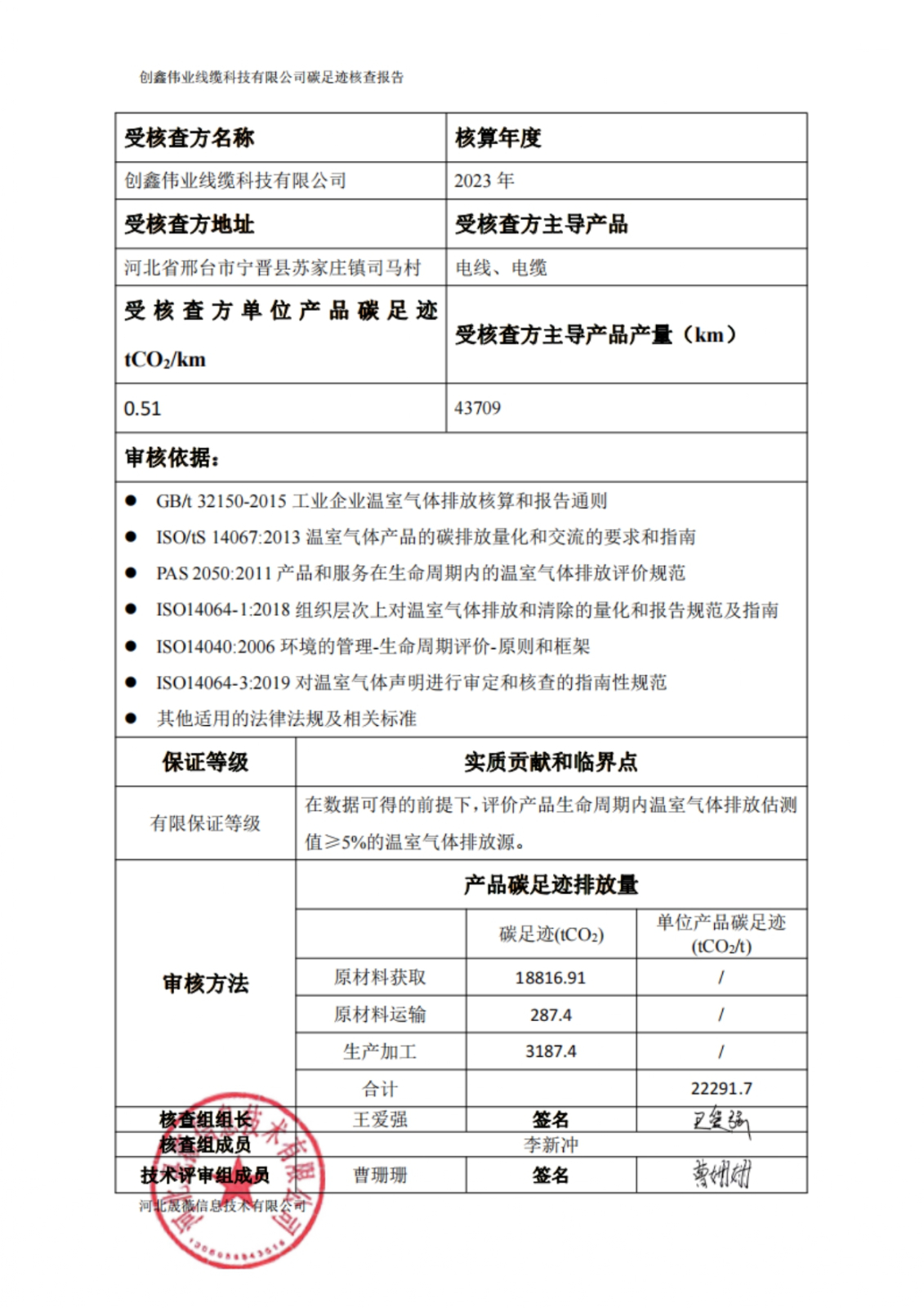 2023年产品碳足迹核查报告公示